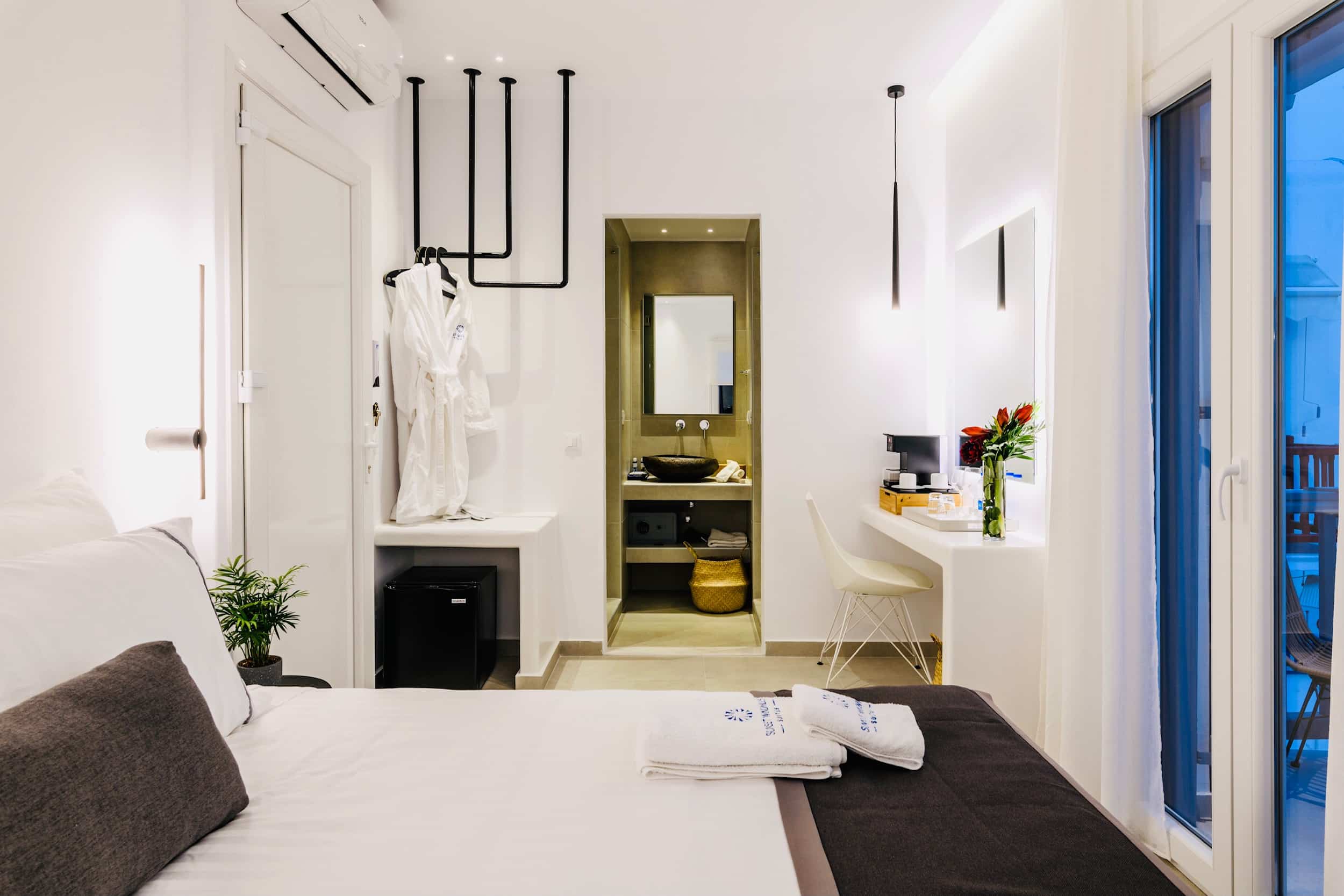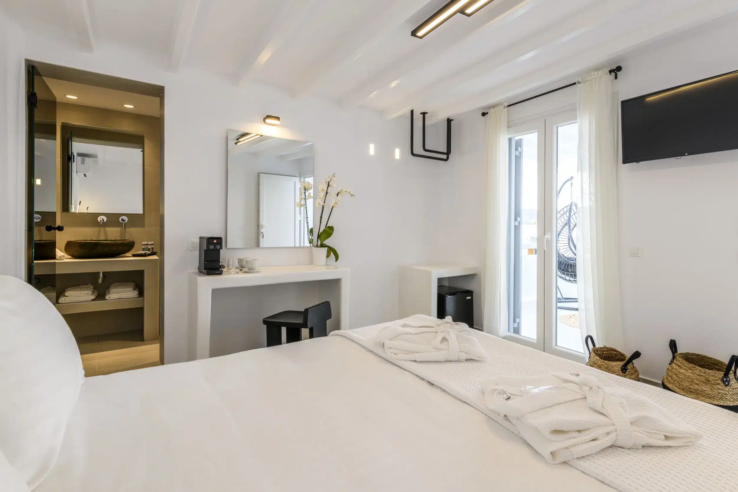 Amazing modern and newly built rooms with an amazing view of the sunset. The location is ideal, 1 min away from the Windmills and Mykonos town.